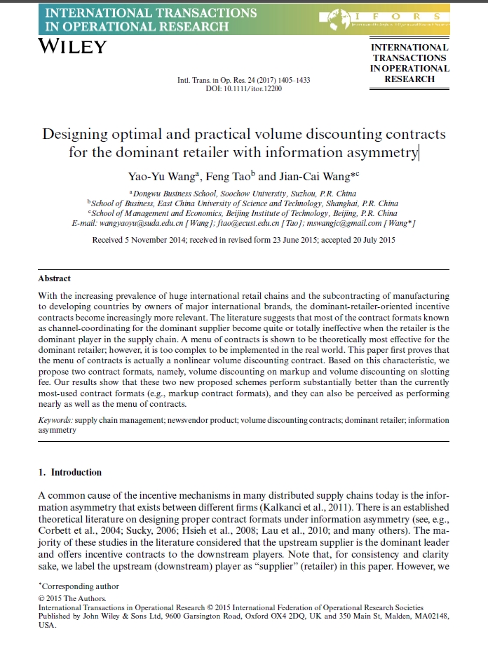 Designing optimal and practical volume discounting contracts for the dominant retailer with information asymmetry
